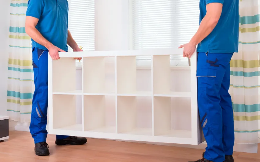 Asennamme kalusteet paikoilleen muuton jälkeen.